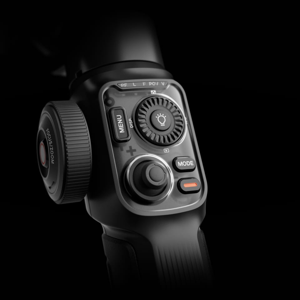 智云开创软硬件一体控制,手机云台实现专业相机才具备的调参功能,独立式菜单、模式,拨盘和摇杆均能一键快速呼出功能,全新工艺材质加持,交互反馈及时,触感清脆温润,